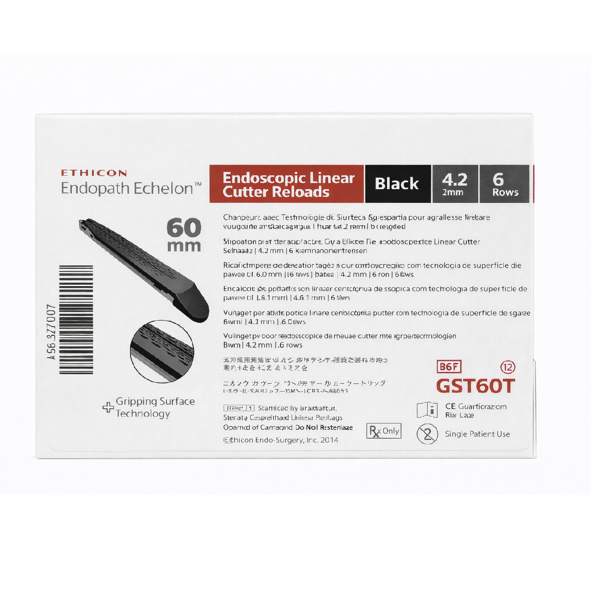 El producto Recarga Negra De 60Mm con Tecnología De Superficie De Agarre Echelon Endopathgst + B-Form Motorizado 60Mm Negro Muy Grueso de la marca Johnson&Johnson con el código GST60T es una recarga de alta calidad diseñada para su uso en dispositivos médicos. Esta recarga está especialmente diseñada para proporcionar un agarre superior y una precisión excepcional durante los procedimientos quirúrgicos.